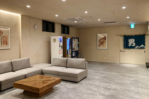 ご入浴後の待ち合わせスペースとなっております。 ソファーもご用意しておりますので、ゆったりとおくつろぎくださいませ。